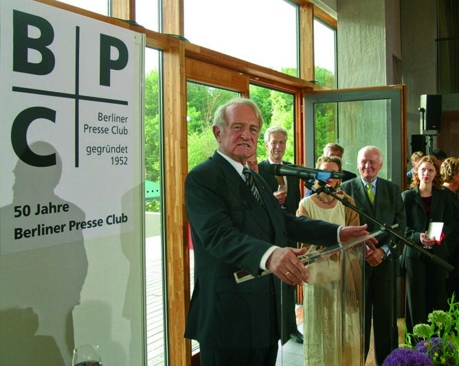 Bundespräsident Johannes Rau spricht auf der Feier zum 50-jährigen Bestehen des Berliner Presse Clubs 2002.