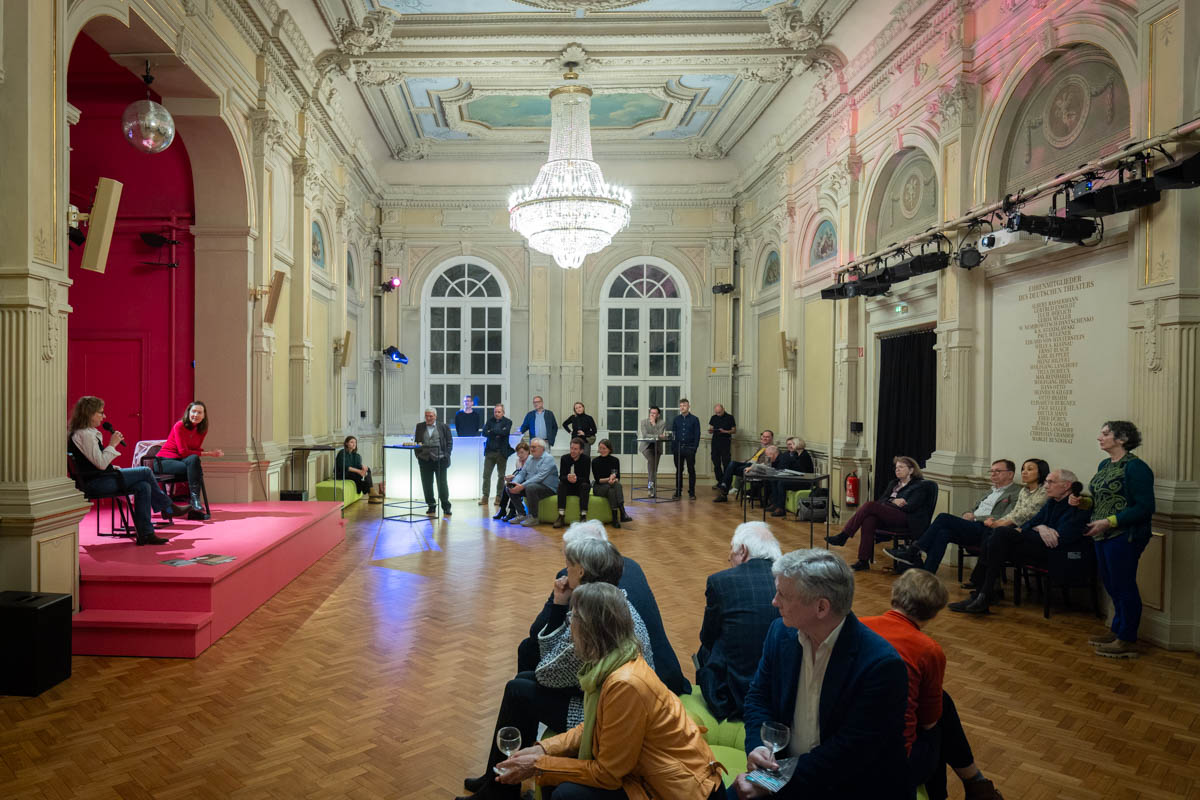 Seit wenigen Monaten ist Iris Laufenberg neue und erste weibliche Intendantin der Bühnen in der Schumannstrasse. Beim Besuch der Salonetage erläutert sie den Mitgliedern des BPC ihr Konzept und die Pläne für die Zukunft des Traditionshauses: Mehr Diversität bei der Auswahl von Stücken und Personal und längere Laufzeiten der Erfolgsproduktionen. Vor allem will sie publikumsnah arbeiten. Deshalb bietet das DT neuerdings zu vielen Vorstellungen Einführungen, Fachgespräche und Diskussionsveranstaltungen an, die bislang großen Zuspruch finden. Nach dem exklusiven, aber lockeren Austausch mit der Theaterleiterin über den Berliner Kulturbetrieb stellt Dramaturg Daniel Richter die Uraufführung von Rainald Goetz Collagen-Text „Barracke“ vor. Eine hilfreiche Vorbereitung für den anschließenden Besuch der Vorstellung im großen Haus.