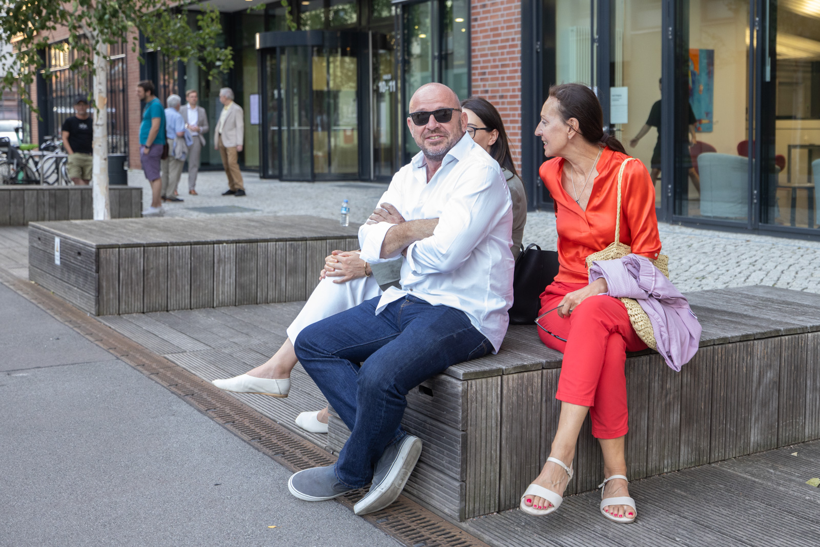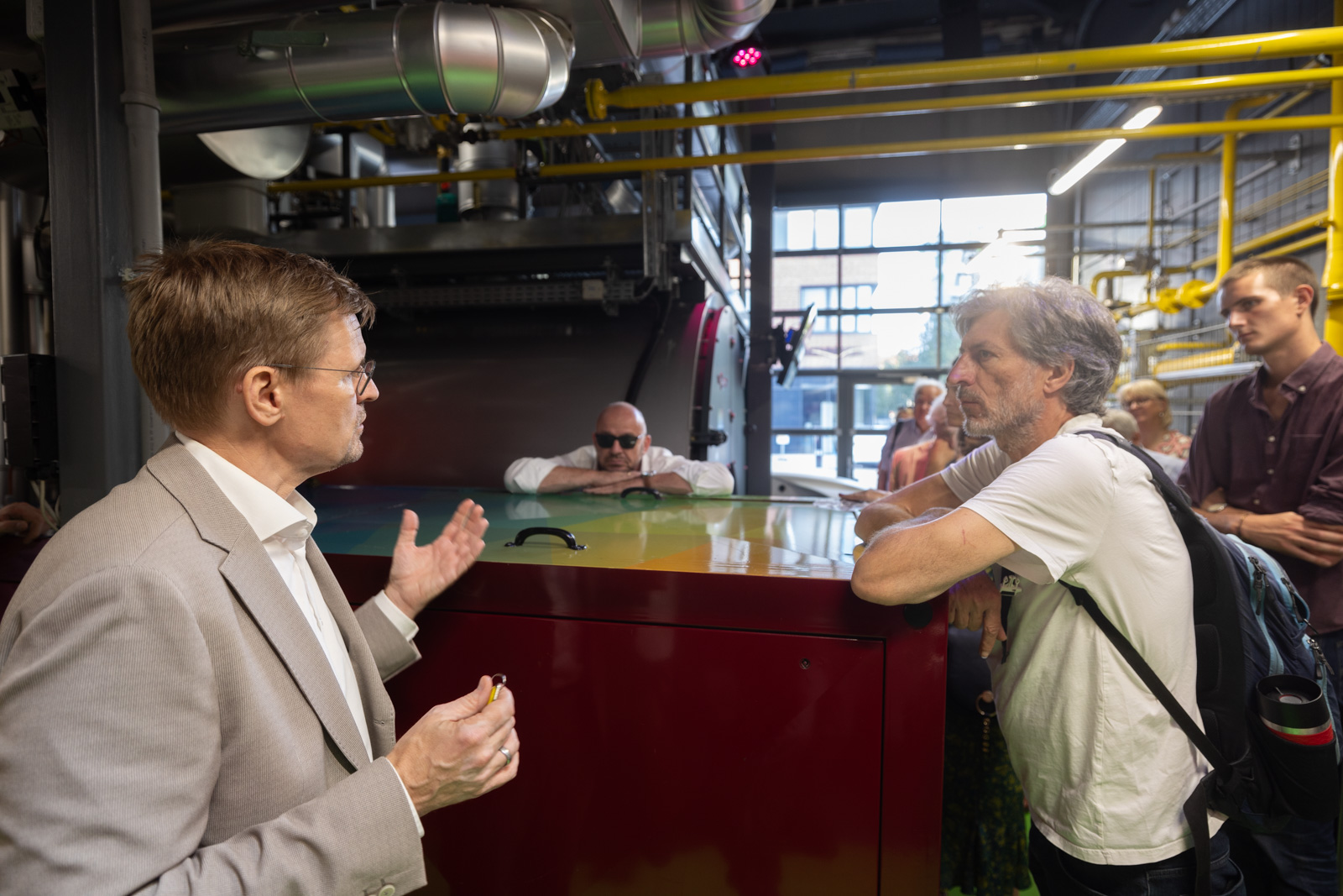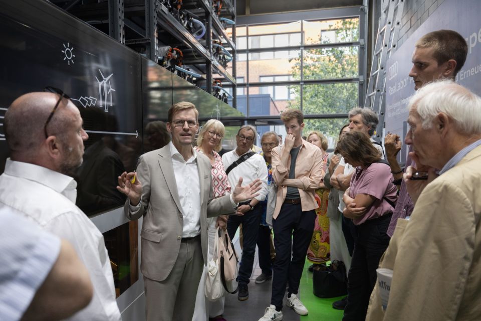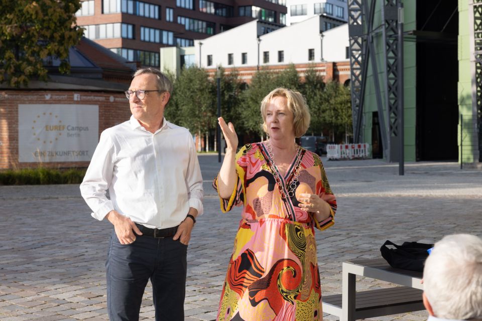 Vorstandssprecherin Karin Teichmann hat uns zunächst mit der Geschichte des Campus' vertraut gemacht und dann zu zwei innovativen Unternehmungen begleitet. Zunächst zur GASAG, die hier seit 2021 ihren Hauptsitz hat. Im Showroom wird gezeigt, wie man den kompletten Campus CO-2-neutral mit Energie und Kälte versorgt. Und natürlich auch, wie sich Energie speichern lässt. Nämlich in ausgedienten E-Auto-Batterien.