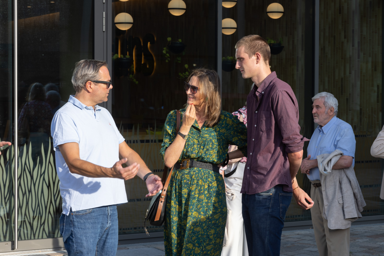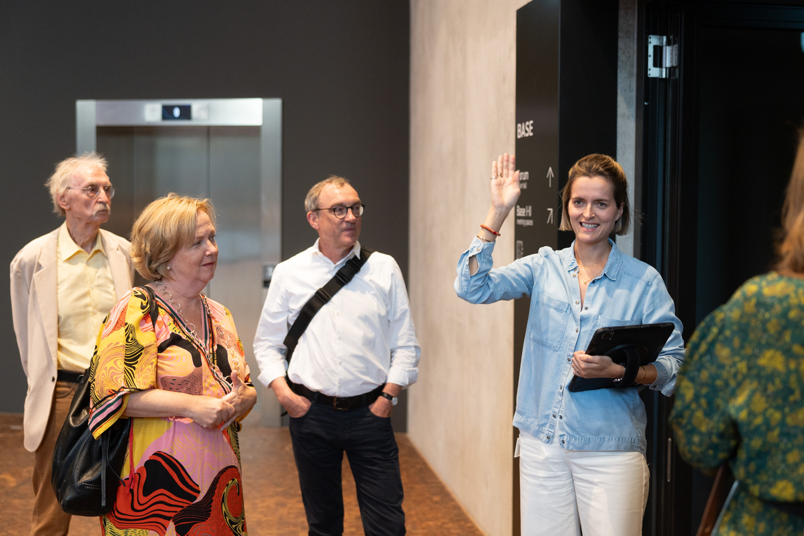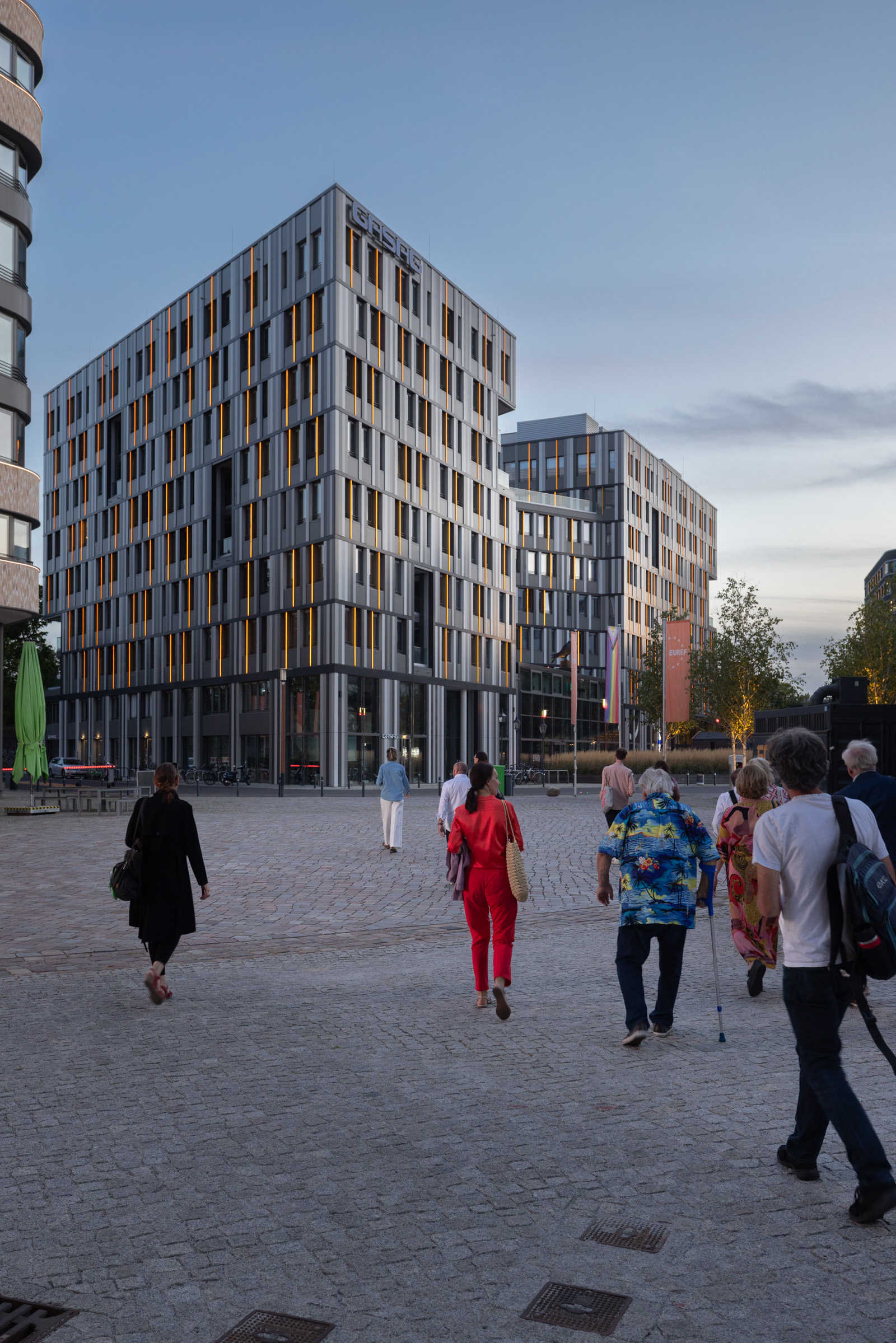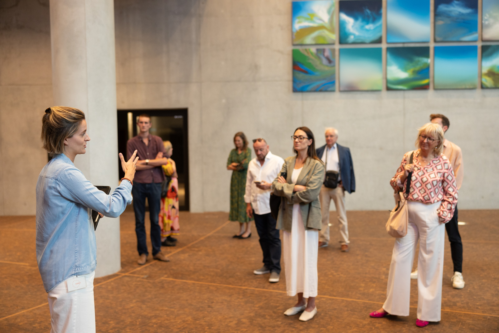 Vorstandssprecherin Karin Teichmann hat uns zunächst mit der Geschichte des Campus' vertraut gemacht und dann zu zwei innovativen Unternehmungen begleitet. Zunächst zur GASAG, die hier seit 2021 ihren Hauptsitz hat. Im Showroom wird gezeigt, wie man den kompletten Campus CO-2-neutral mit Energie und Kälte versorgt. Und natürlich auch, wie sich Energie speichern lässt. Nämlich in ausgedienten E-Auto-Batterien.
