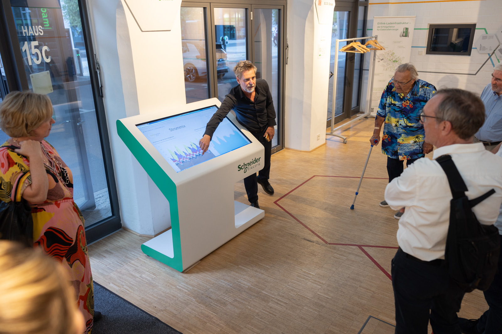 Auch bei Schneider Electric, einem französischen Konzern mit rund 185.000 Mitarbeitenden weltweit, steht das Thema Energiemanagement im Zentrum. Mit Lösungen für E-Autos und Häuser wird hier demonstriert, wie man energieeffizient und umweltschonend die CO-2-Belastung herunterfahren kann. Der Berliner Campus dient der Firma dabei als Experimentierfeld.