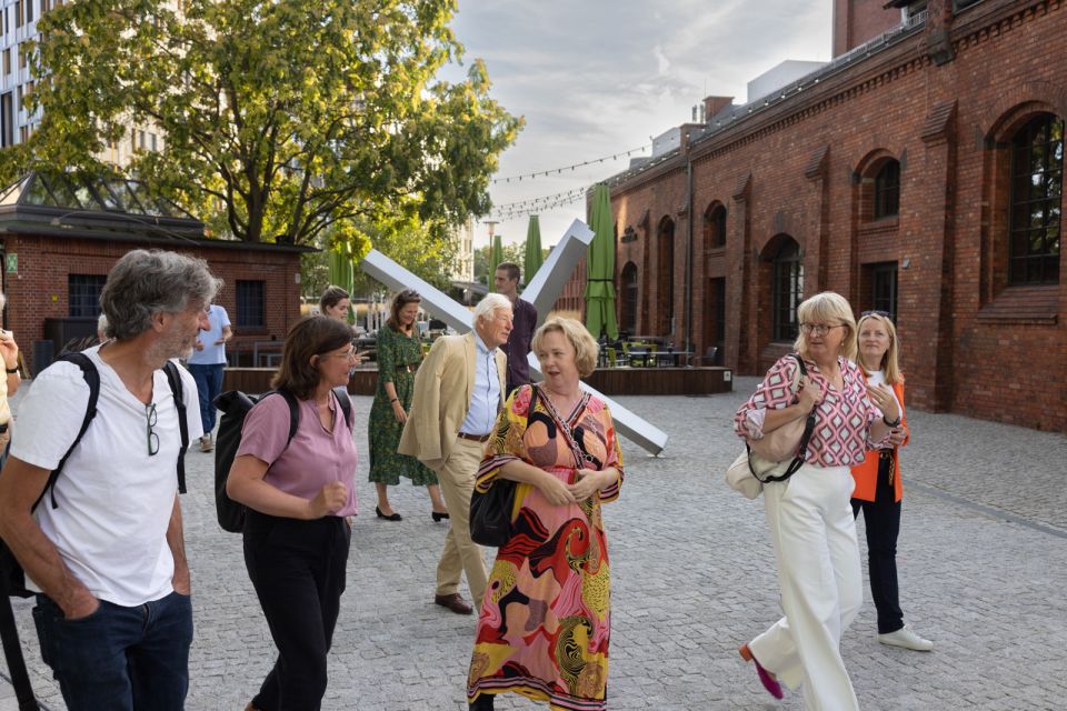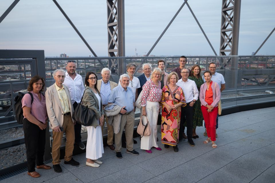 Das Highlight unseres Besuches war der Rundgang auf dem Dach des gerade erst fertiggestellten Gasometers. Aus Denkmalschutzgründen wurde die komplette Außenhülle der Konstruktion erhalten. Aber innen ist alles neu: vom riesigen Veranstaltungsraum mit ausgeklügelter Akustik bis zur Skybar mit sensationellem 360-Grad-Ausblick, in 60 Meter Höhe, ganz nah am Himmel über Berlin. Der EUREF-Campus, ein Zukunftsort inmitten der Metropole und dabei ein attraktiver Ort zum arbeiten, forschen, entdecken und verweilen.