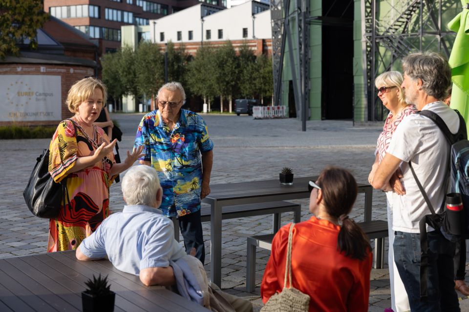 Klar, haben wir alle den Gasometer Schöneberg schon einmal gesehen. Aus der Ferne, als er bis 1995 noch als Gasspeicher in Funktion war. Oder später im Fernsehen, als Location für den Polit-Talk von Günther Jauch. Oder nach der Umgestaltung als Zentrum des EUREF, des Europäischen Energieforums. Zumindest haben wir die leuchtenden Sterne daran am nächtlichen Berliner Himmel schon einmal entdeckt. Der EUREF-Campus nennt sich selbst "Reallabor der Energiewende".